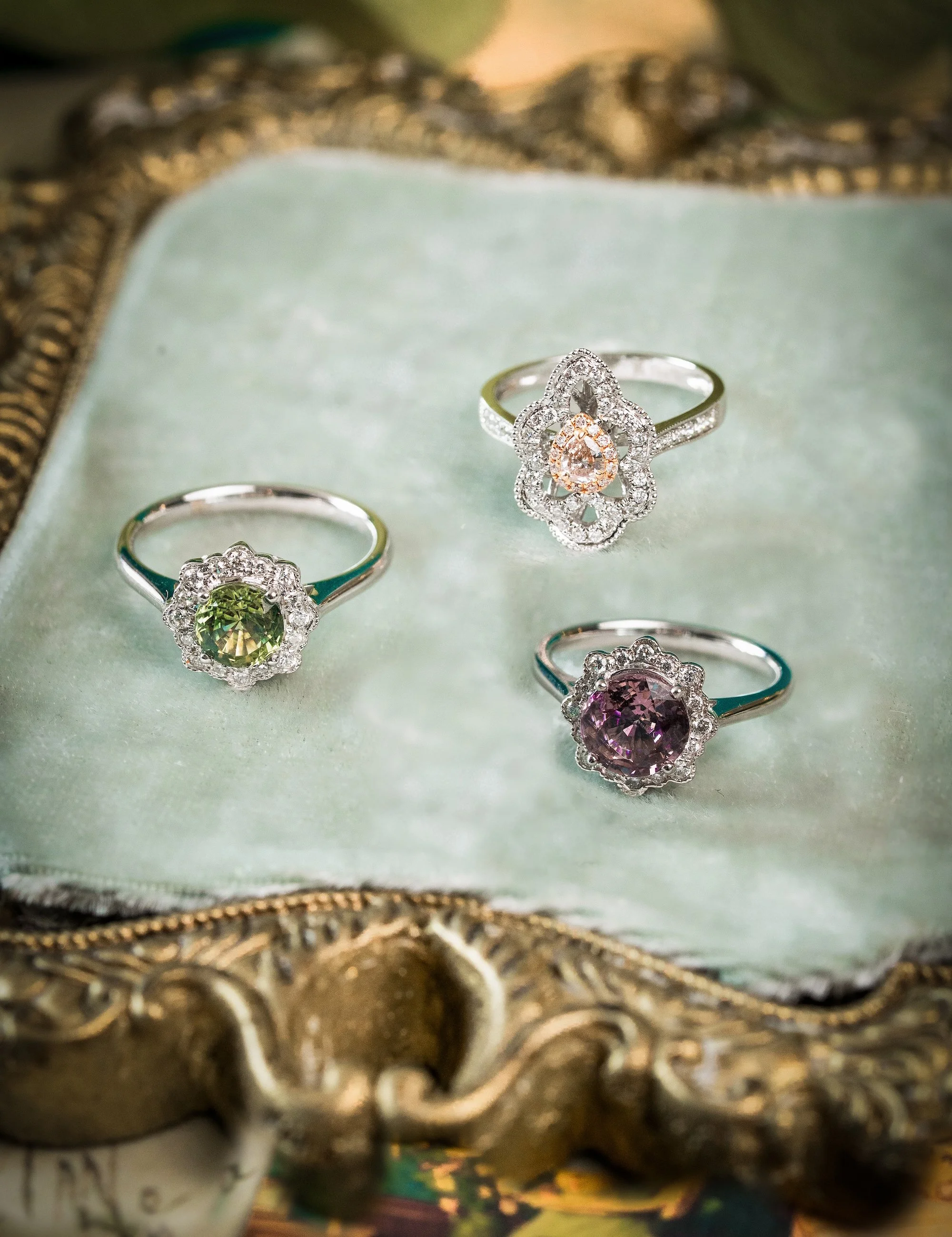 Inspired by Edwardian-era jewellers and their devotion to lightness, lace-like detail, and refined craftsmanship, we present three heirloom rings: The Lace Heirloom, the Filigree Heirloom, and the Gossamer Heirloom.